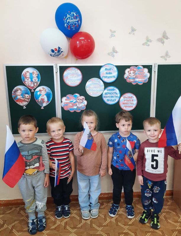 В нашем детском саду прошел тематический день, посвященный Дню государственного флага. Этот знаменательный день помогает нашим детям воспитывать в них патриотизм и чувство гордости за свою Родину. В группе были проведены беседы, дети прослушали песни, стихи о Родине, а так же обсудили символическое значение каждого цвета на нашем флаге. В завершении нашего мероприятия ребята подготовительной группы сделали аппликацию российского флага. Детские сердца наполнились чувством радости, гордости за нашу великую державу – Россию.