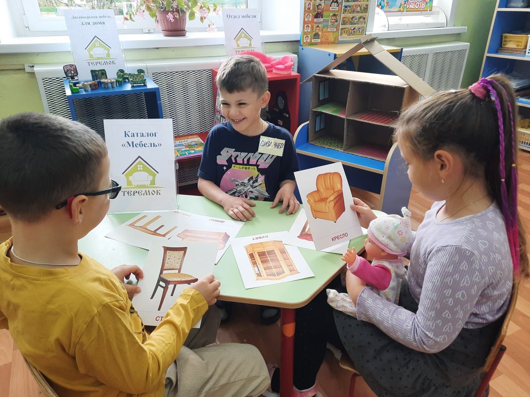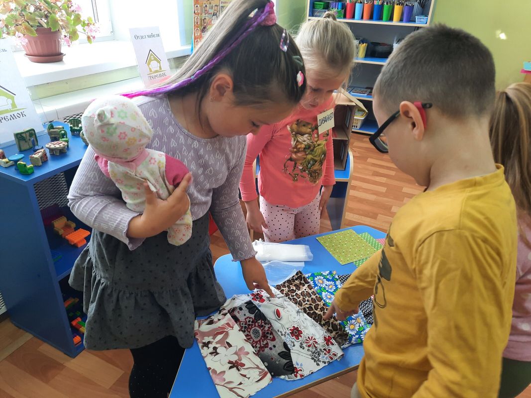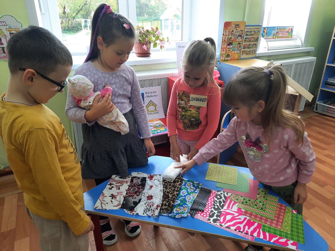 Семья выбирает текстиль для отделки окон, мебели и т.д.