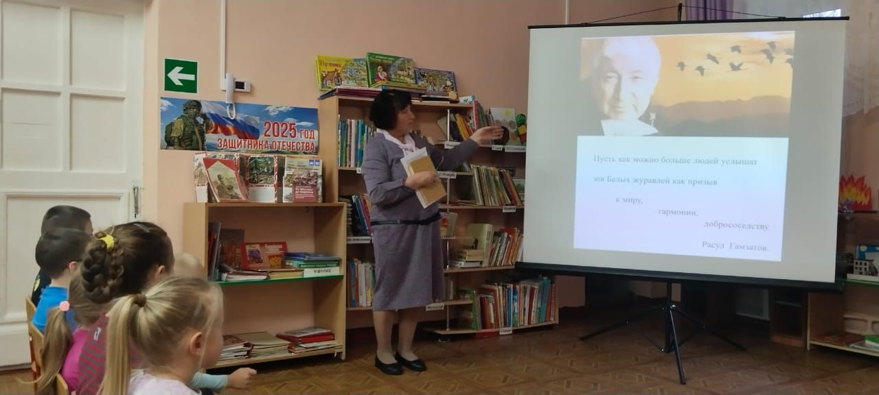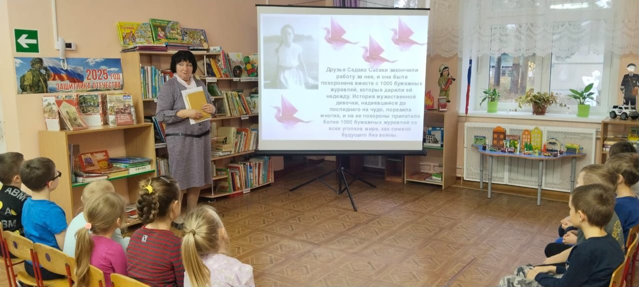 Людмила Кимовна начала встречу с рассказа об истории возникновения праздника. Дети узнали о народном поэте Дагестана Расуле Гамзатове и его знаменитом стихотворении «Журавли», ставшем символом памяти о погибших солдатах. Особое внимание было уделено истории маленькой японской девочки Садако Сасаки и её мечте о мире.