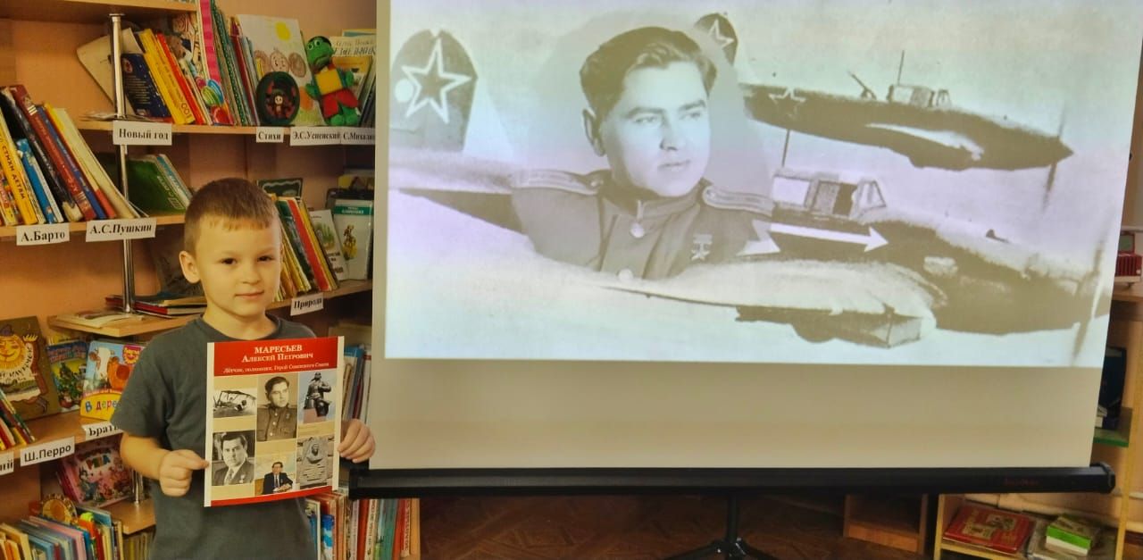 В ходе встречи дошкольники познакомились с замечательной книгой Бориса Полевого «Повесть о настоящем человеке». Библиотекарь подробно рассказала о судьбе реального героя — летчика Алексея Маресьева, ставшего прототипом главного героя книги. Ребята с большим интересом слушали отрывки из произведения, в которых описывались подвиги советского летчика. В заключение мероприятия вместе с детьми создали коллективную композицию «Журавли мира».