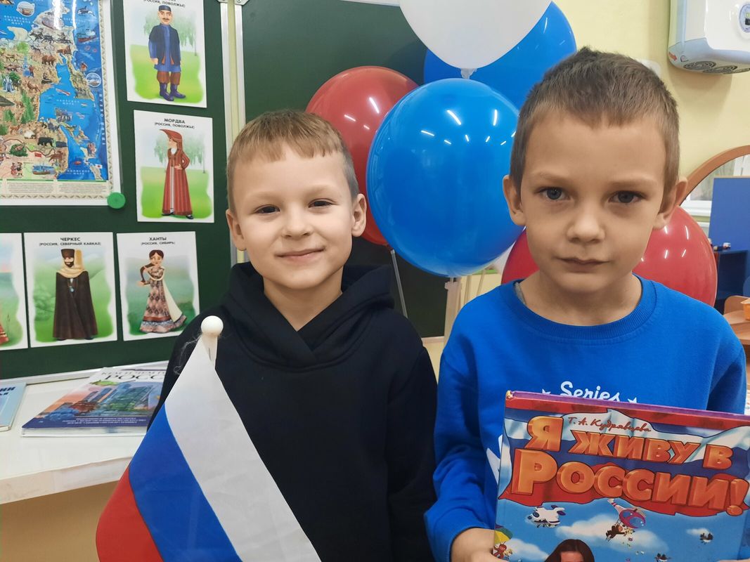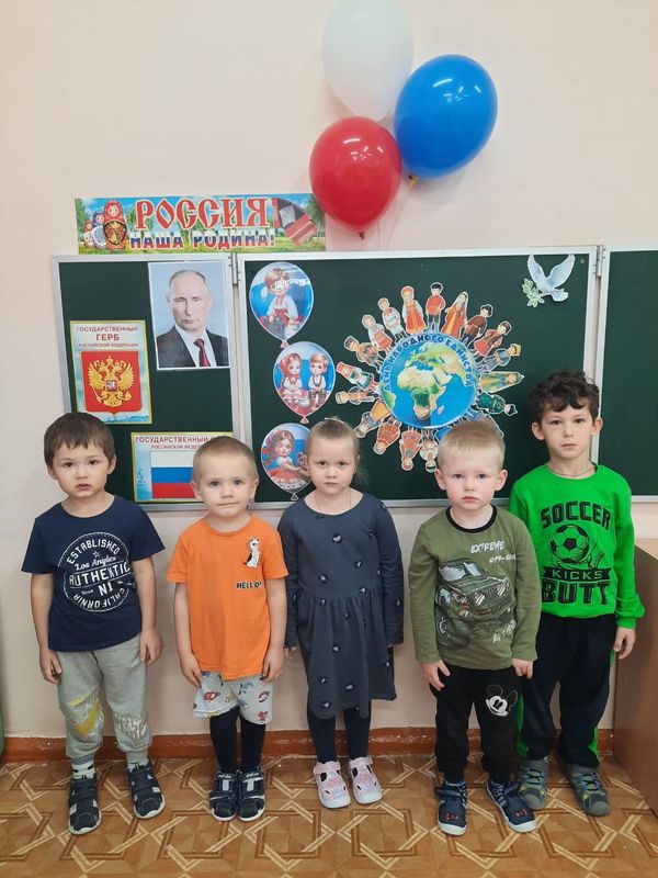 Воспитатели рассказали детям, почему мы отмечаем этот день, что значит «единство» и как важно жить в дружбе и согласии. В течение всего дня ребята рассматривали иллюстрации с видами российских городов, изучали сюжетные карты, на которых были изображены знаковые места России, листали познавательные книги о природе России, знакомились с изображениями народных промыслов и ремёсел. Через яркие образы дети увидели, насколько велика и разнообразна наша страна - в ней есть и бескрайние степи, и густые леса, и высокие горы, и широкие реки. Узнали, что в России живут люди разных национальностей, каждый из которых вносит свой вклад в общую культуру. Поняли, что народные промыслы - это не просто красивые вещи, а часть наследия, которое передаётся из поколения в поколение. Ощутили гордость за свою страну и желание беречь её природное и культурное богатство. Воспитанники средней группы совместно с воспитателем Яковлевой Т.Ю. сделали коллективную аппликацию «Планета дружбы: мы разные, но мы вместе!» Ребята подготовительной группы приняли участие в поселковом праздничном концерте, где достойно представили детский сад с яркими номерами.