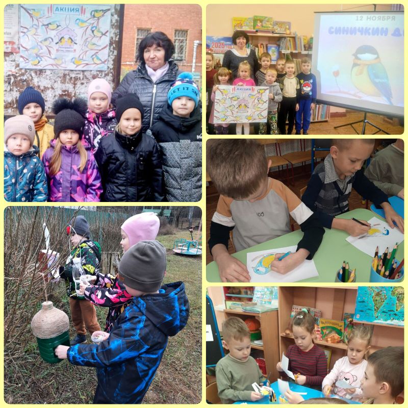 В нашем детском саду во всех группах в этот день прошли тематические занятия. В младшей группе дети с интересом рассматривали вязаную птичку, поиграли в игру «Птички». В средней группе была проведена беседа с ребятами о зимующих птицах, дети рассмотрели корм для птиц, изготовили «съедобные кормушки». В подготовительной группе была организована встреча с библиотекарем. На этой встрече дети узнали об истории возникновения праздника, познакомились с зимующими птицами, рассмотрели разнообразные виды кормушек. Для детей была проведена познавательная беседа о синичках, их повадках и значении в природе. В завершении дети совместно с воспитателем изготовили плакат «Покормите птиц зимой». Ребята раскрасили и вырезали синичек. Каждый ребенок с радостью наклеил свою птичку на плакат. Во время прогулки ребята развесили кормушки, сделанные детьми, совместно с родителями.
