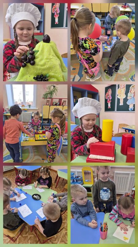В рамках реализации региональной программы «Семья – это мы!» с воспитанниками детского сада (возрастная категория от 3 до 5 лет) в марте месяце проводились комплексные занятия, разработанные на основе методических рекомендаций ТОИУУ. Программа включала в себя следующие виды деятельности: чтение художественной литературы, конструирование, рисование, аппликация, анализ и интерпретация картин и репродукций, а также прослушивание музыкальных произведений. Параллельно с образовательными занятиями, на протяжении всего месяца, дети активно участвовали в сюжетно-ролевой игре «Отмечаем праздник /день рождения». Эта игровая деятельность была направлена на развитие социальных навыков, эмоционального интеллекта и когнитивных способностей воспитанников. В рамках игры дети моделировали различные ситуации, такие как «Семейное утро: «Готовим сюрприз для мамы», «Салон красоты», «Почта и магазин подарков», «Организуем детскую игровую зону» и др.